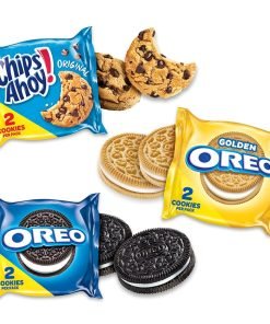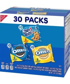 This Sweet Treats Variety Pack includes assorted snacks in convenient snack packs. OREO sandwich cookies have the original creme filling. OREO Golden cookies offer a vanilla take on the classic. CHIPS AHOY! chocolate chip cookies are filled with crunchy goodness. Tuck these sweet snacks into your lunch for dessert. or reach for a pack when you’re ready to unwind. Each pack includes 2 cookies.